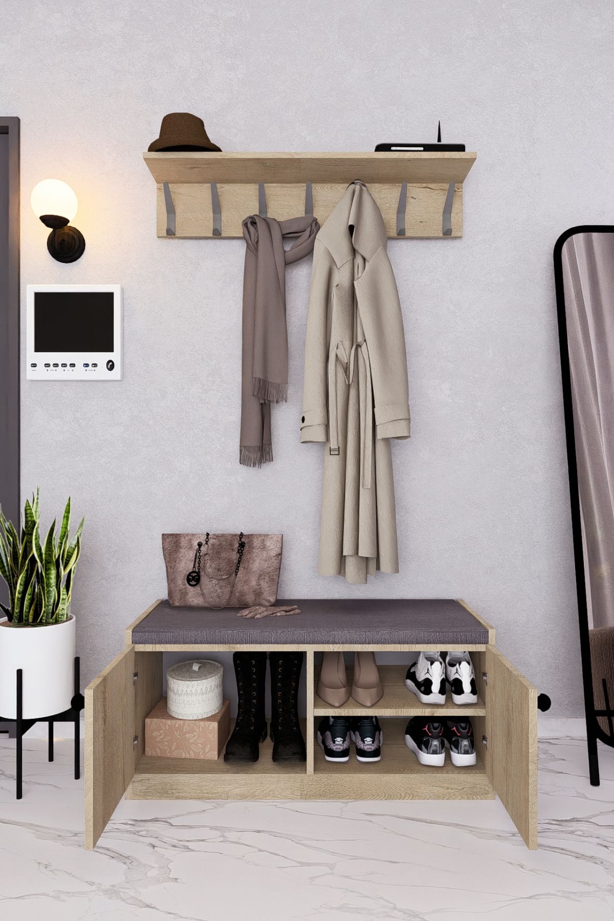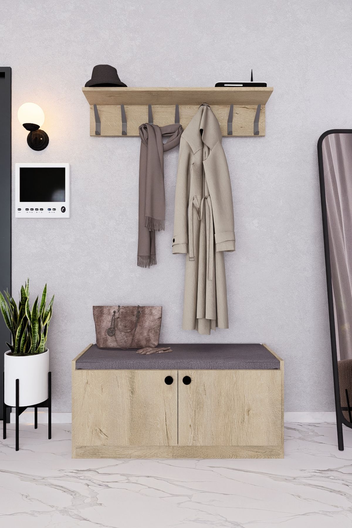 MDF BENCH AYAKKABILIK PORTMANTO AHŞAP LEFKAS MEŞE DEMİRBAL MOBİLYA