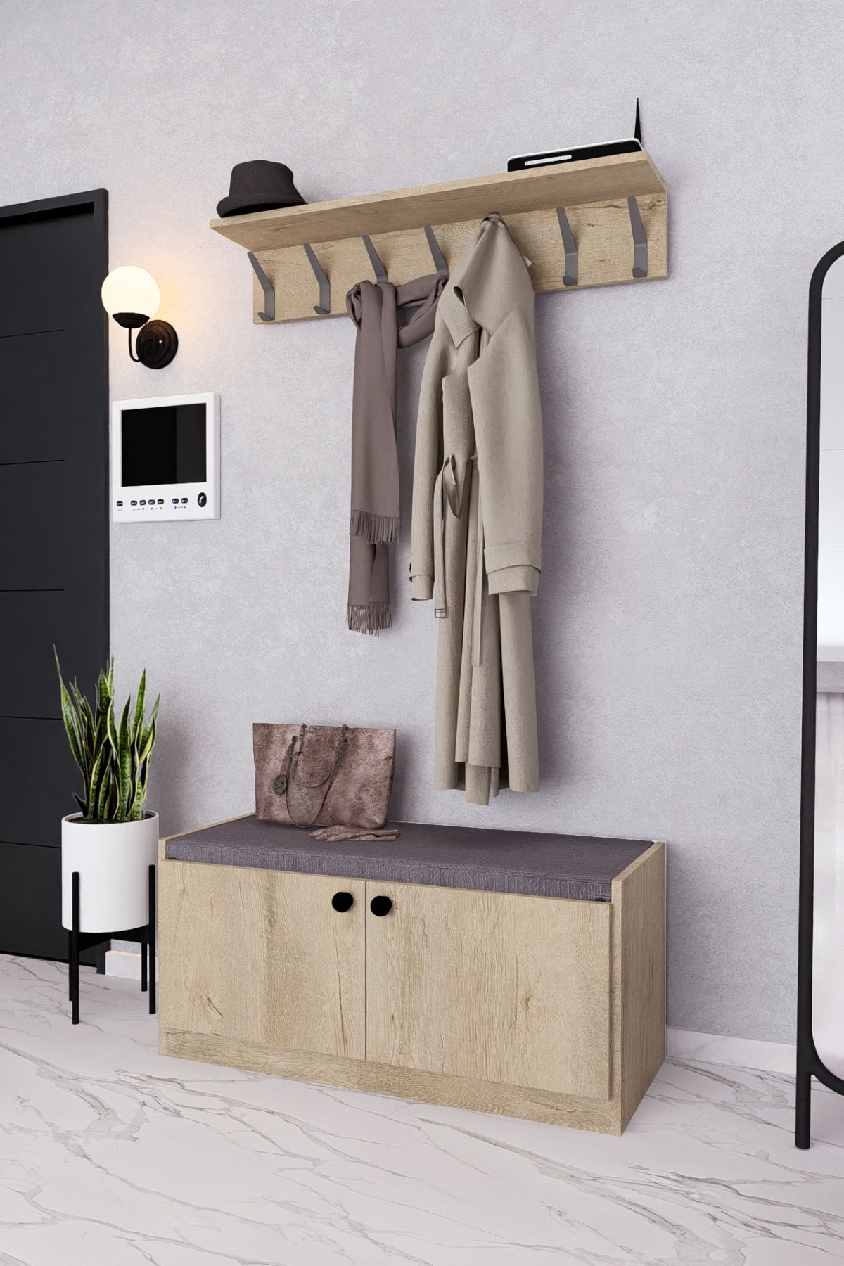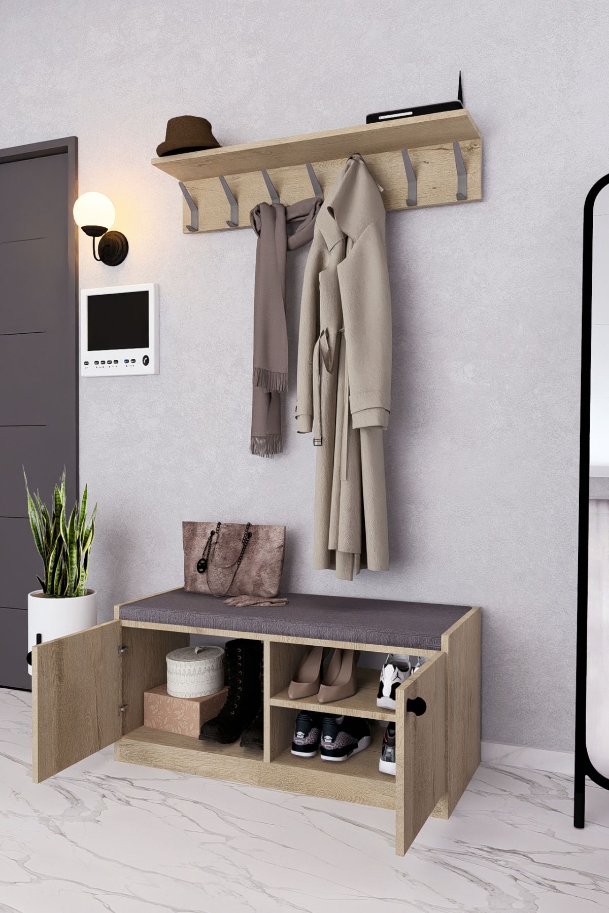 MDF BENCH AYAKKABILIK PORTMANTO ANTRASİT DEMİRBAL MOBİLYA
