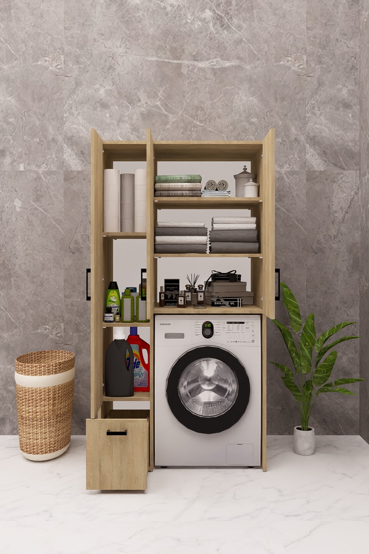 MDF ÇEKMECELİ ÇAMAŞIR MAKİNESİ VE KURUTMA MAKİNESİ DOLABI 190cm AYTAŞI KREM DEMİRBAL MOBİLYA