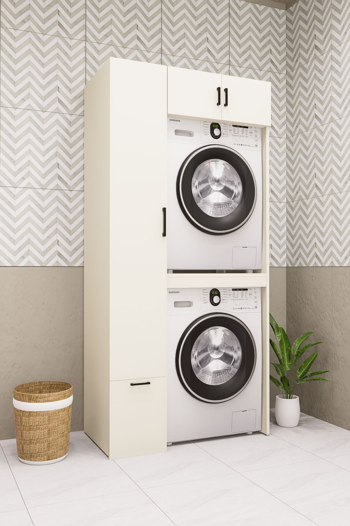 MDF ÇEKMECELİ ÇAMAŞIR MAKİNESİ VE KURUTMA MAKİNESİ DOLABI AYTAŞI KREM DEMİRBAL MOBİLYA