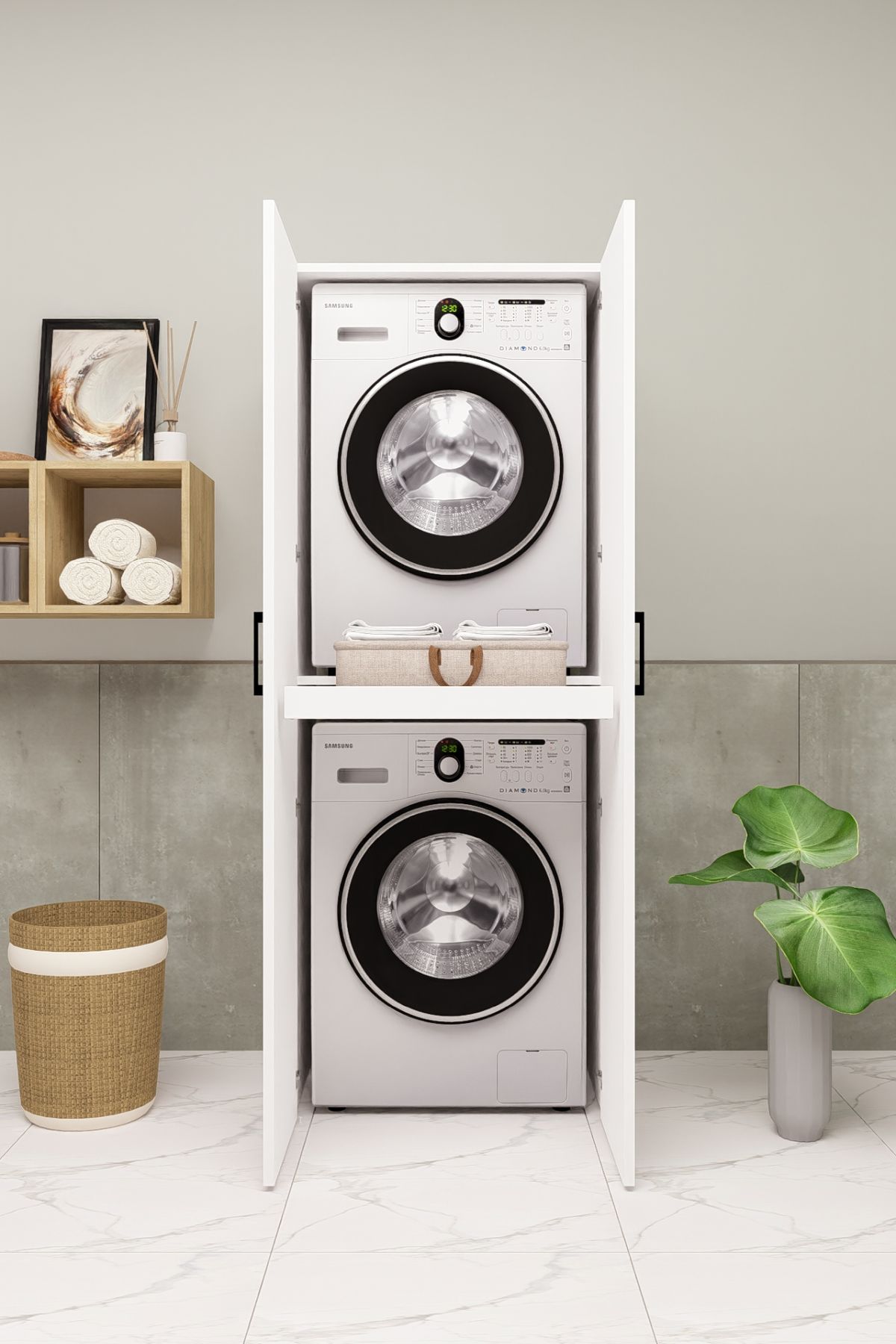 MDF ÇEKMECELİ KAPAKLI ÇAMAŞIR MAKİNESİ VE KURUTMA MAKİNESİ DOLABI ÇEKMECELİ 190 BEYAZ DEMİRBAL MOBİLYA