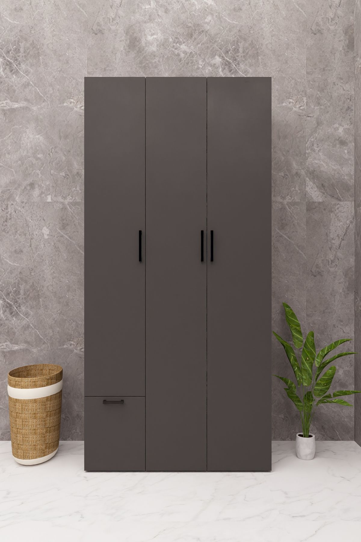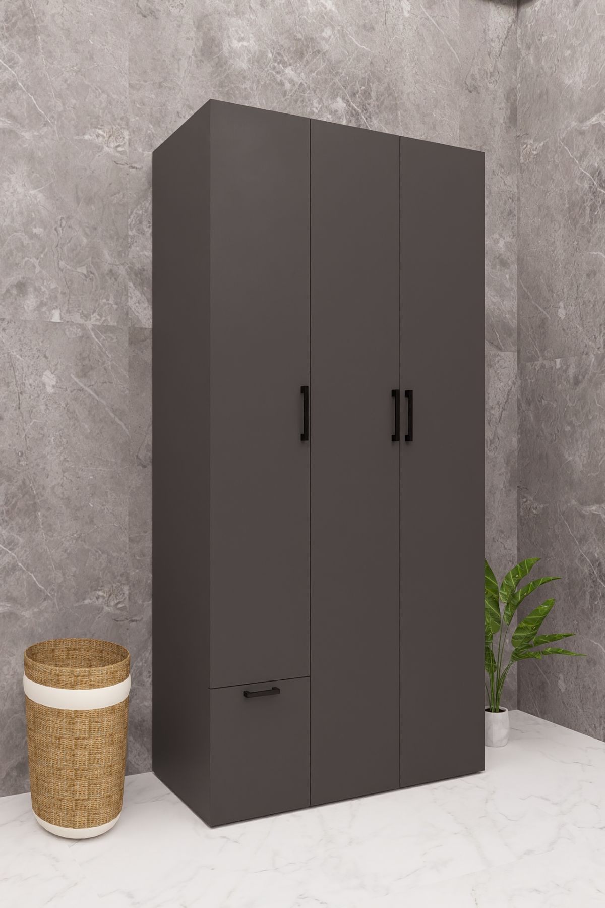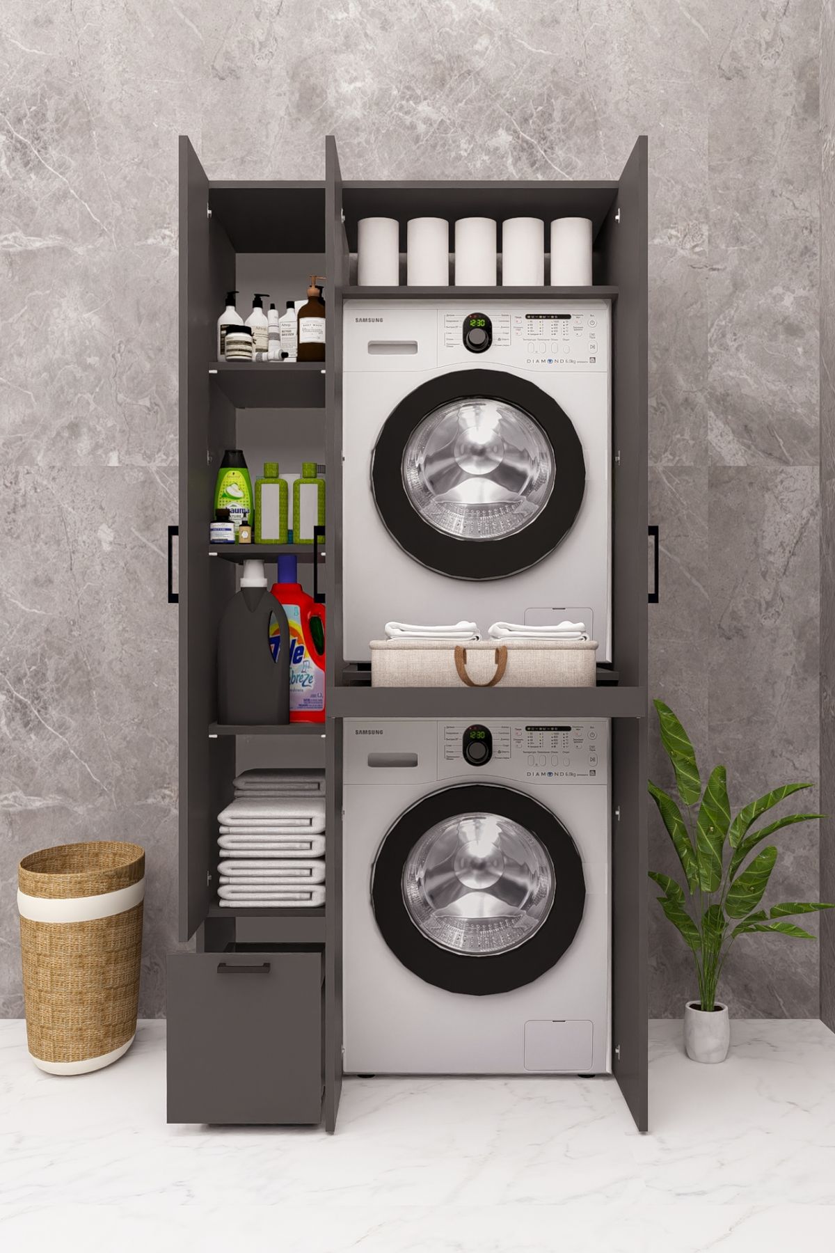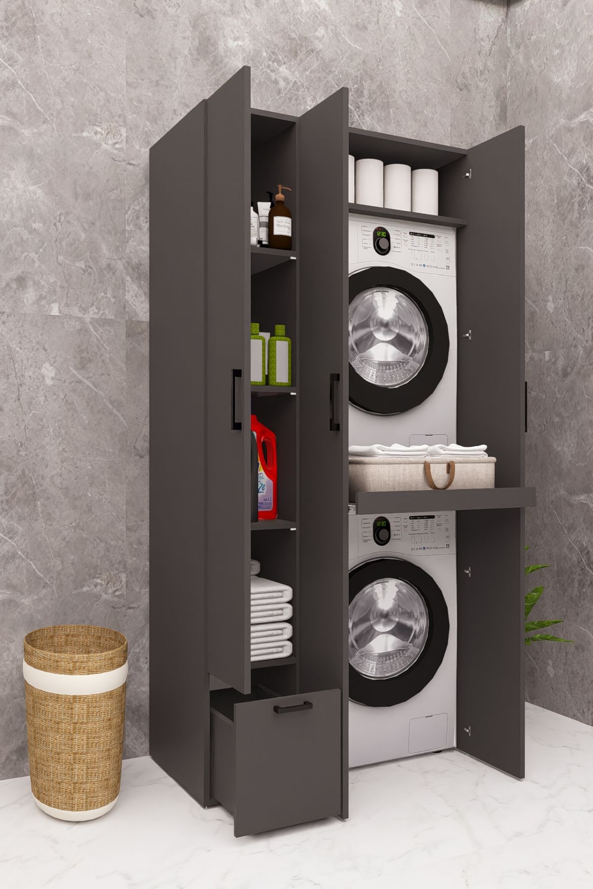 MDF ÇEKMECELİ KAPAKLI ÇAMAŞIR MAKİNESİ VE KURUTMA MAKİNESİ DOLABI ÇEKMECELİ ANTRASİT DEMİRBAL MOBİLYA